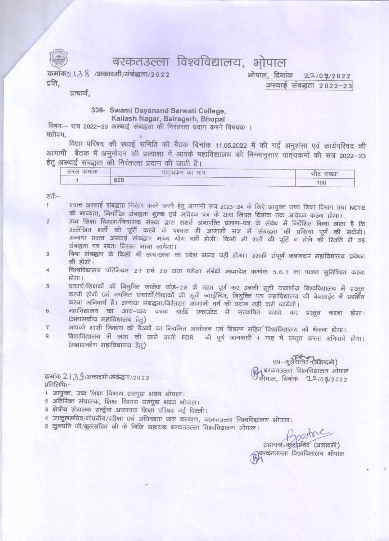 B.Ed Affiliation 2022-23