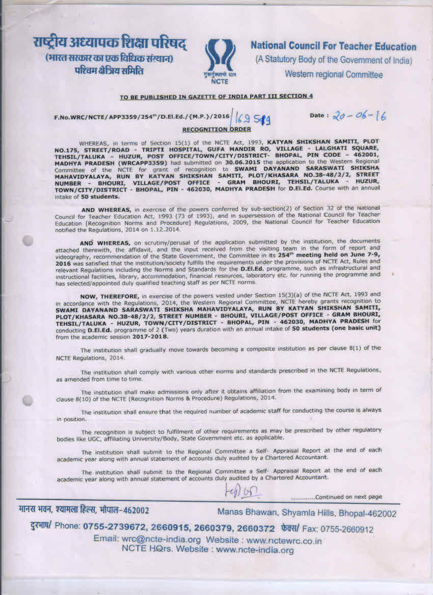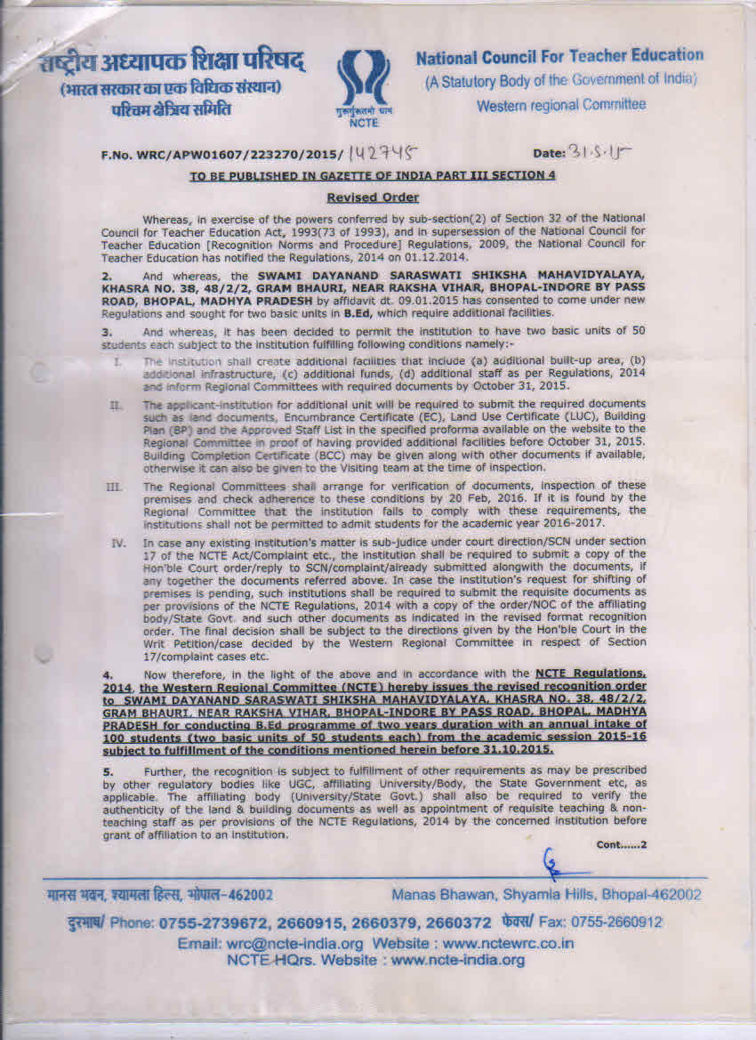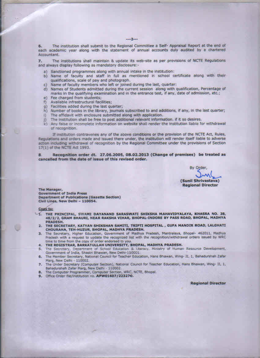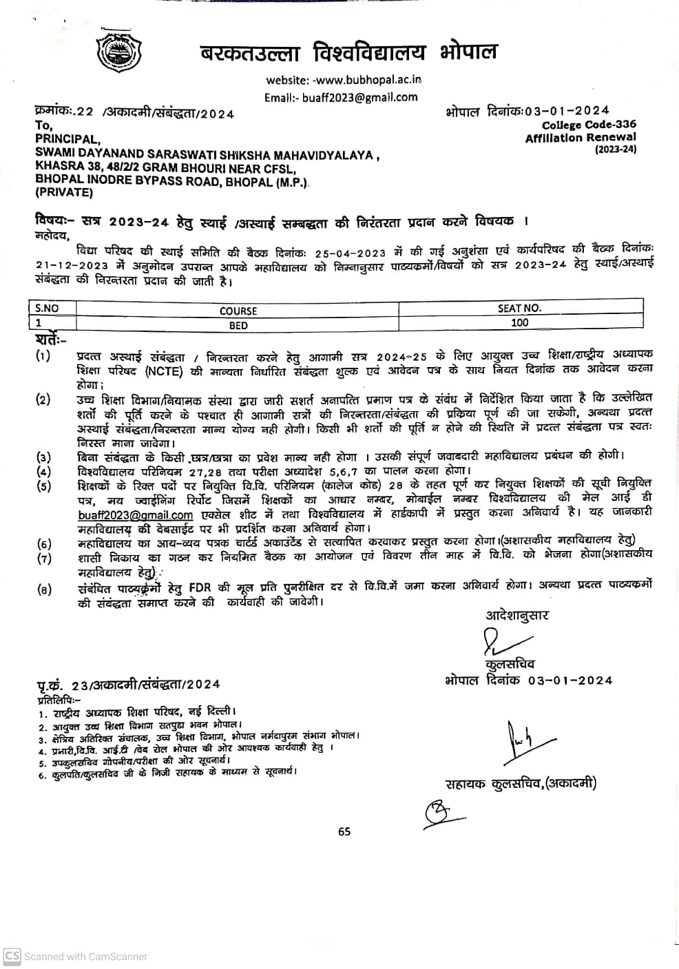 B.Ed Affiliation 2023-24